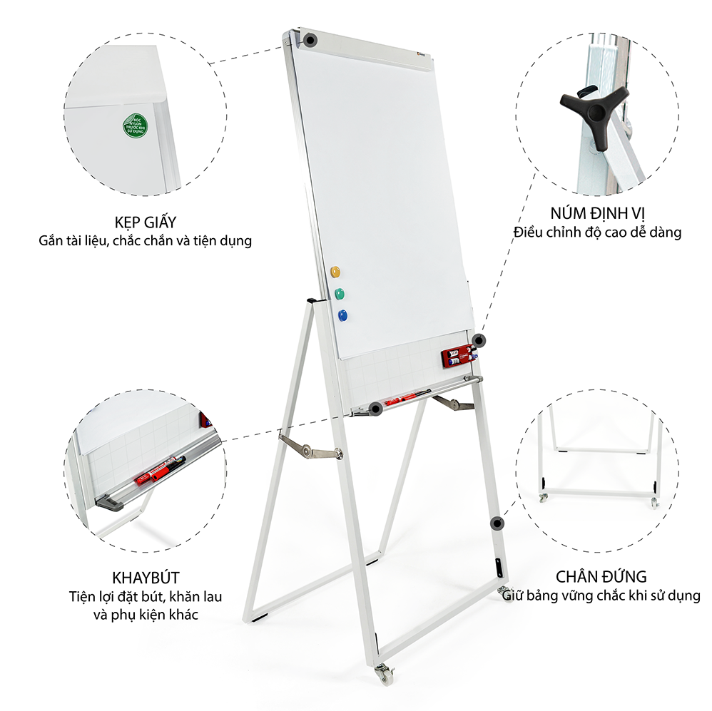 Bảng flipchart gấp gọn là phương tiện hỗ trợ đắc lực cho các nhà đào tạo, các tranier, hay tất cả những ai mong muốn cải thiện khả năng thuyết trình, đào tạo, tự tin đứng trước đám đông.