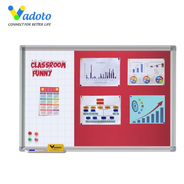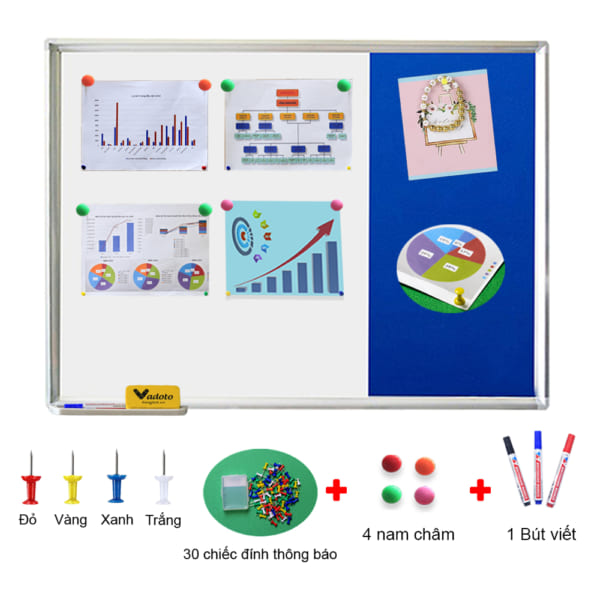 Với nhu cầu sử dụng bảng ngày càng đa năng và tiện ích hơn cho người dùng, Bangtu.vn đã thiết kế và sản xuất bảng combo từ trắng + ghim nỉ Vadoto. Sản phẩm bảng combo từ trắng + ghim tích hợp 2 loại bảng với nhau trên cùng 1 diện tích sử dụng. Chúng ta vừa có thể viết, đính thông báo hay tranh ảnh trang trí. Dòng bảng này được sử dụng nhiều tại văn phòng, công ty nhằm mang đến một thiết bị bảng “2 in 1” vô cùng tiện ích.